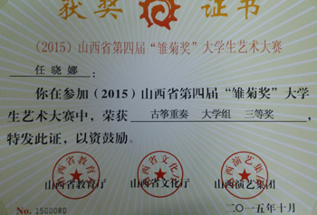 本次大赛分声乐、语言类,西洋民乐类,钢琴舞蹈类三大类。我校学生参加了书法、相声、节目主持、古筝、二胡五个项目。音乐学院的任晓娜等9名学生获古筝团体三等奖,音乐学院的赵苗苗获声乐三等奖,音乐学院的陕邵华获二胡三等奖。(教务处/供稿)