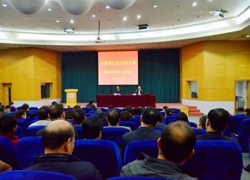 11月4日上午,我校在科学会堂二层报告厅举行“十三五”发展规划专题报告会,河南农业大学校长、中国工程院院士张改平作了题为《办好我们自己的大学》的报告。校领导符惠明、武海顺、王心平、卫建国、原战勇、闫桂琴、薛耀文、郝勇东,及我校中层以上干部聆听了报告会。报告会由校长武海顺主持。