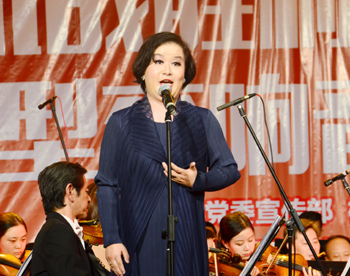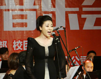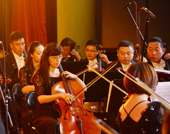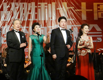 晚7点30分,音乐会在激情高昂的音乐会序曲中拉开帷幕。由女高音歌手宋克宁独唱的《英雄赞歌》,讴歌了英雄的壮举,缅怀了为国牺牲的先烈。歌曲《夜深沉》由京胡与乐队合奏,多种乐器的声音合在一起,旋律跌宕起伏,使观众陶醉其中。著名男中音歌唱家王虎鸣带来的《我为祖国献石油》,慷慨激昂的旋律震撼人心;青年抒情花腔女高音歌唱家张家毓演唱歌曲《玛依拉变奏曲》,曲调轻盈流畅充满了浓郁的民族气息;《复仇的痛苦》激烈亢奋的音乐基调、紧密急促的歌声再加上精妙的德语唱法,将整场音乐会推上了高潮。笛子独奏《刘胡兰》以婉转悠长的曲调引领观众徜徉在音乐的海洋。《黄河大合唱》组曲唱响了本场音乐会的主题,经典曲目《黄河颂》、《黄河之水天上来》、《黄河怨》让在场观众感受了母亲河的咆哮,重温了抗战年代的激情岁月。《我爱你中国》、《跟你走》和《两地曲》等歌曲引起现场观众阵阵热烈掌声。精彩绝伦的大型民族管弦音乐会在《举杯吧,朋友》中缓缓落下帷幕。(张聪 张明娜/文 苏继文 王诗琳 倪腾辉 相娜娜/摄)