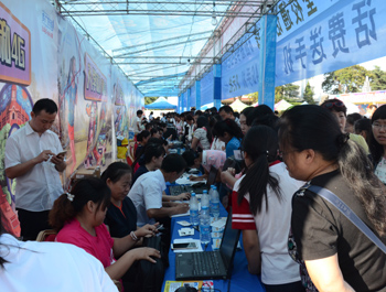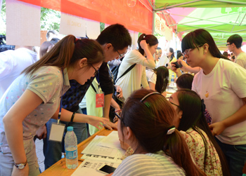 学校设立了新生报到路标,为新生及家长提供了一个更为简洁的报名通道;新开辟的家长休息区有遮阳棚、小板凳,方便家长们休息;保卫处也对送新生的私家车指定了具体的停车地点;校学生会、校社联、校青协在不同的地点设服务点为新生提供帮助。由于住宿区离学校较远,迎新的学长、学姐们热情周到的带领新生去住宿区,在路上他们主动帮忙搬行李、领住宿用品。