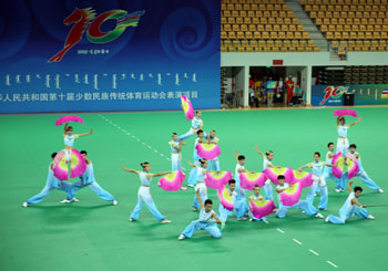 据悉,本届民族运动会共有2937名运动员参加178个表演项目。表演项目分为综合类、竞技类、技巧类三大类别。表演项目与一般意义上的竞技项目有所不同,重在展示各民族独有的特色传统体育项目及艺术形式。(体育学院/文 李虎威/摄)
