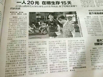 学员们艰苦奋斗、踏实肯干、不抛弃不放弃的精神受到了肯定,央视财经新闻专题报道了山西师范大学福州生存训练,充分肯定了我校生存训练对大学生的积极意义,指出,生存训练是大学生的必修课,生存训练是为年轻人精神补钙。福建的海峡都市报、东南快报等多家媒体进行了报道,光明网、新浪网等媒体进行了转载。(校团委 供稿)