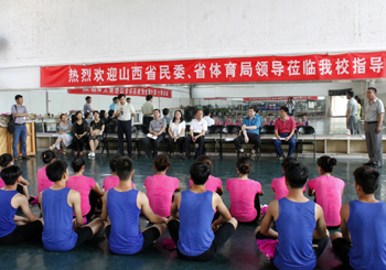 7月27日上午,山西省民委副巡视员段维华、省体育局副局长李世杰,省民委宗教处、省体育局群体处、临汾市民族宗教事务局等部门负责人莅临我校,看望慰问和指导备战的第十届全国少数民族传统体育运动会的运动员和教练员。我校副校长郝勇东、体育学院党委书记李学刚、院长郑旗陪同慰问。