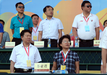 副校长、校体育代表团团长闫桂琴在开幕式主席台上(前右一)