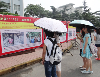 图片展出以来,我校师生不断前来驻足观看,仔细阅读图片说明,大家边看边交流学习心得。本次图片展对教育我校广大师生加强党性修养、坚定理想信念、扎实践行“三严三实”将起到积极的推动作用。(苏继文/图文)