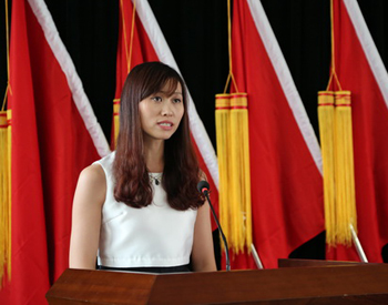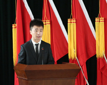 新党员代表、教育技术与传媒系学生吉宸德发言