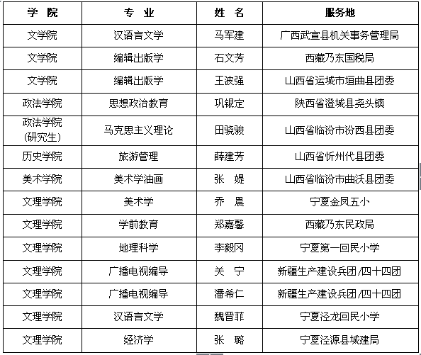附:2015年山西师范大学大学生服务“西部计划”汇总表