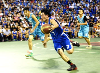 在庄严的国歌中,2015年山西师范大学学生篮球联赛男篮总决赛拉开序幕。闯进决赛的两大劲旅分别是音乐学院与传媒学院。两队一路过关斩将,最终相逢在总决赛现场,他们在全场观众的热切期盼中展开巅峰对决,双方娴熟的战术、流畅的跑动、默契的配合以及精彩的啦啦操表演赢得观众阵阵喝彩。双方攻势迅猛,进攻和防守都展示出了雄厚实力,运球、抢断、扣篮,一气呵成,如行云流水,似蛟龙入海,远投三分球更是锦上添花。比赛中,两队你追我赶,比分交替上升。音乐学院以截球、快投两项优势不断得分,传媒学院沉着比赛,严打猛攻。最后,音乐学院以75:63赢得了本次篮球联赛男篮的总冠军。