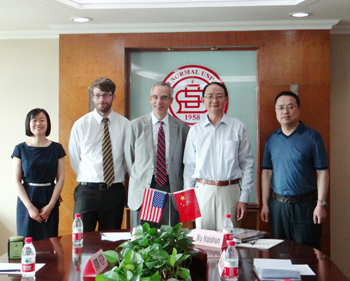 5月18日-19日,美国南犹他大学校长怀亚特博士一行2人访问我校。19日上午,怀亚特校长一行先后与化材学院和外国语学院的师生进行了交流,就两个学院与该校在相关学科方面的交流合作进行了探讨。怀亚特校长对张献明院长及化材学院近年来所取得的成果赞赏有加。