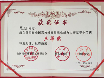 4月23—24日,第四届全国高校辅导员职业能力大赛(华北赛区)在燕山大学举行,我校外国语学院辅导员黎超获得第四届全国高校辅导员职业能力大赛复赛(华北赛区)三等奖。