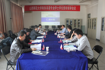 4月26日上午,商务英语专业学士学位授权审核会议在逸夫楼11714召开。专家组由组长、对外经贸大学英语学院教授陈香兰,成员山西财经大学经贸外语学院教授张雁玲、申屠菁,大同大学外语学院教授苏鹏,北京服装学院教授郭平建组成。教务处处长范哲锋,外语学院党委书记申书琪、院长秦杰及学院相关人员出席了本次会议。会议由教务处处长范哲锋主持。