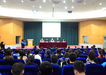 4月8日下午,由食品科学学院主办的以“成功•智慧”为主题的报告会在科学会堂二层报告厅举行。太原双合成食品有限公司董事长赵光晋作了专题报告。校长武海顺、副校长郝勇东,食品科学学院党委书记亢俊红、院长郜刚及部分师生参加了报告会。副校长郝勇东主持报告会。