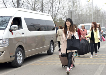 会议结束后,实习学生即跟随17个县市区政教科负责同志前往各实习基地学校。(王诗琳 翟慧贤/文 饶二保/摄)