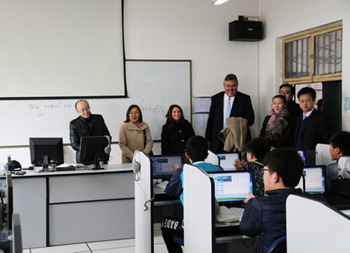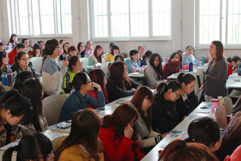合作洽谈会结束后,双方与会人员一同参观了校园。下午,菲利普副校长一行人在阶梯教室为我院外语系近三百名学生详细介绍了美国高校及滑石大学的办学情况,引起了在座同学们极大的兴趣。(李磊/图文)