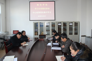 2月4日上午,物信学院党委召开了学习讨论落实活动第四次集中学习讨论会议,院党委书记张争宽、院长杨虎、院党委副书记陈向波、副院长张东海、苗向阳,院团委书记杨亚东,院教学办公室主任卫永霞参加了学习讨论。会议由院党委书记张争宽主持。