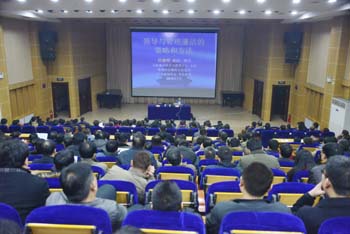 按照学校学习讨论落实活动实施方案的要求,1月9日下午,我校学习讨论落实活动专题培训班在音乐厅举行第二次专题辅导。全体校领导、全校科级以上干部参加培训。北京航空航天大学公共管理学院教授、廉洁研究与教育中心主任任建明教授应邀作了专题辅导报告。校党委委员、纪委书记李德龙主持会议。