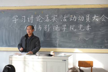 2014年12月25日上午,戏剧与影视学院党委在5号楼201教室召开学习讨论落实活动动员大会。大会由学院党委书记车文明主持,学院全体党员参加。