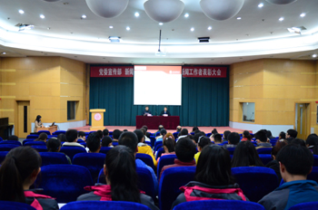 12月24日下午,校党委宣传部、新闻中心2014年度优秀新闻工作者表彰大会在科学会堂二层报告厅召开。校党委副书记王心平出席大会,校党委宣传部副部长、新闻中心主任张忠民主持会议并对2014年新闻宣传工作作了总结。参加大会的还有党委宣传部的全体工作人员和三个校区校报、电视台、广播台的全体新老记者、通讯员和播音员,“感光度”摄影协会和大学生记者团的成员。