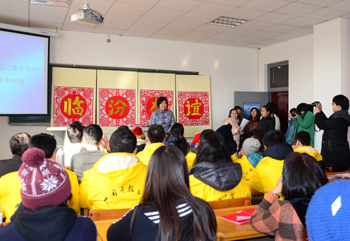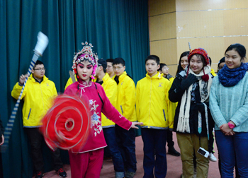 12月22日,“2014年中国寻根之旅冬令营”澳新华裔青少年团一行33人访问我校,陪同团组来访的有山西省外侨办李彦处长,临汾市人民政府外事侨务办公室李艾珍主任,郭雅丽副主任及相关工作人员。我校外事处牵头,协同历史与旅游文化学院、戏曲文物研究所及校党委宣传部等相关部门安排了此次接待工作。