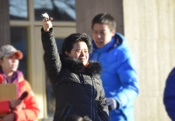 副校长闫桂琴宣布比赛开始并叩响发令枪