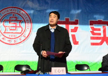 校党委副书记王心平宣布2000米团体长跑赛开始