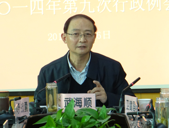 2014年12月6日上午,学校在科学会堂1011会议室召开了第九次行政例会。校长武海顺,副校长卫建国、原战勇、闫桂琴、薛耀文、郝勇东,校长助理车文明、张献明以及各学院院长、各独立研究所、机关各行政部门、各教学辅助单位负责人参加了会议。武海顺校长主持会议并讲话。