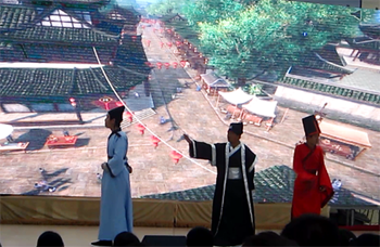 本次决赛共分为四个环节。第一环节为古诗创作,我校学子以“路边顽石”为题现场创作五言律诗,合辙押韵,意味悠长,继半决赛后又创佳作;第二环节为知识问答,本环节的30道题目涵盖古今中外的文学、历史、哲学、艺术等各方面的知识,我校选手不慌不乱,步步为营,取得良好的答题成绩;第三环节为即兴说理,裴鹏程同学以“青春是用来祭奠的”为题,说理逻辑严密、气场宏大,展现出了我校大学生的人文风采;第四环节为人文演绎,我校代表队上演了“王艮深衣蒲轮入京师”。本剧选材独到,融入传统京剧元素,演绎巧妙,塑造了生动鲜活的人物形象,博得了阵阵掌声。