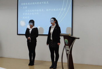 决赛分文科组、理科组进行。参赛作品由文史类(含外语、艺术)学术论文和社会调查报告、自然科学类学术论文、发明制作三大类组成,分为PPT汇报和现场答辩两个环节。选手们按照抽签顺序依次进入审评会场进行答辩,在汇报中,通过PPT解说、软件仿真模拟等方式展示作品,他们深入浅出的语言、形象生动的比喻、绘声绘色的讲解赢得了在场观众的阵阵掌声。之后,团队成员答辩环节中面对评委们提出的问题态度严肃诚恳,回答幽默机智。决赛现场高潮迭起,气氛热烈。最后,山西师范大学第八届“挑战杯”青年学生课外学术科技作品大赛决赛在热烈的掌声中圆满落幕。