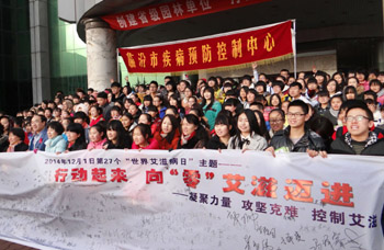 我校和临汾市疾控中心联合举办“世界艾滋病日”宣传活动