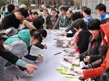 现场的同学们在宣传横幅上进行签名活动并领取了艾滋病宣传手册和艾滋病防治与反歧视知识读本以及纪念品,观看了“宣传艾滋病日”漫画展以及艾滋病防控知识宣传展板等。