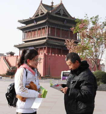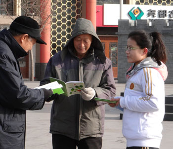 在尧都区的街头上积极宣传预防艾滋病的知识