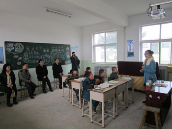座谈后,一行人在该校校长、副校长陪同下分为两组对我校实习生张静、侯娜娜的授课进行听课、评课。虽然学生人数不多,但张静、侯娜娜两位同学能认真细致耐心授课,他们俩不仅仪表得体,授课内容编排恰当,还能注意到学生个体心理的不同,教学方法得当。原战勇副校长对两位实习生的良好表现给予了赞扬并对我校实习生的实习效果给予肯定。
