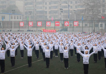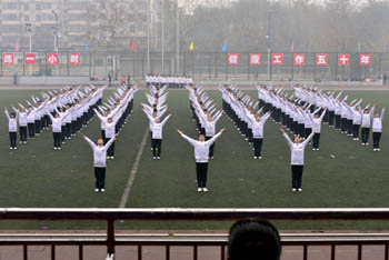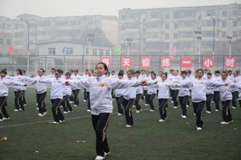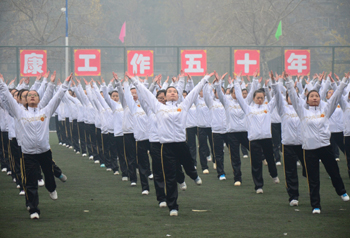 响应共青团中央、教育部号召,我校广泛开展了以“走下网络、走出宿舍、走向操场”为主题的大学生阳光体育运动。11月23日下午,我校在一校区田径场隆重举行了一年一度的广播操比赛。此次比赛共有17个学院,3000余名2014级新生参加。校党委副书记王心平,校体育运动委员会主任、副校长闫桂琴,副校长薛耀文、郝勇东,校体育运动委员会副主任教务处处长范哲峰、校工会主席李春仁、体育学院院长郑旗以及校体育运动委员会委员、各学院领导和机关部门负责人出席了本次开幕式。校体育运动委员会副主任、校办主任薛珠峰主持本次比赛。