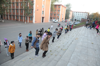 开学伊始,校领导即召开校体育运动委员会专题会议,部署和安排我校具体的实施工作。校领导与教务处、体育学院负责人多次深入相关单位进行调研,经学校研究,制定了我校《大学生阳光体育活动实施方案(试行)》和《国家学生体质健康标准(2014年修订)》实施方案,在全校兴起了以“走下网络、走出宿舍、走向操场”为主题的阳光体育活动,初步形成了具有我校特色的学生体质健康锻炼模式,即“两操、一课、一活动、一训练模式”(早操、课间操、体育课、课外体育活动、代表队训练),真正做到了院院有体育活动,班班有体育项目,人人有体育特长,把“每天锻炼一小时,健康工作五十年,幸福生活一辈子”的阳光体育理念推向了一个新的高潮。(校阳光体育领导组/文 邓碾管/摄)