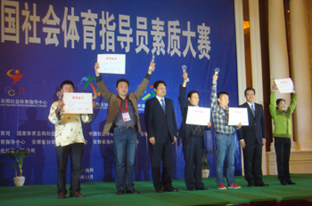2014年11月1-6日,由国家体育总局社会体育指导中心主办的“第一届全国社会体育指导员素质大赛”在安徽省池州市举行,以山西师范大学体育学院学生为骨干的山西省代表队参加了此次比赛。经过激烈的角逐,我省代表队在全国32支省市代表队中脱颖而出,荣获团体二等奖,个人单项取得了4金2银5铜的好成绩,为山西省和我校赢得了荣誉。