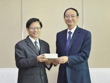 陈惠邦校长对我校教育教学改革成果表示充分肯定,他说,两校在文化背景等诸多方面有很多相似之处,希望双方在原有基础上开拓更多的交流和合作渠道,并表示愿为我校教师、学生访学交流提供更多的便利和优惠政策,同时盛情邀请武校长赴台进行访问交流。