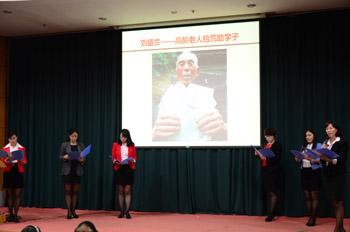本次道德讲堂以培养大学生思想道德修养为目标,以加强大学生道德素养为主线,理论讲述与情景表演交互进行,通过诵经典、学模范、开讲座的形式,以情施教,以理育人,情景交融地宣扬了优秀的道德品质,体现了“培育文明风尚,铸就和谐校园”的教育理念,唤起了同学们对道德的敬意,具有较强的现实意义。(韩美琪 王诗琳 秦骏 外语学院/文 苏继文/摄)