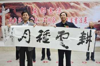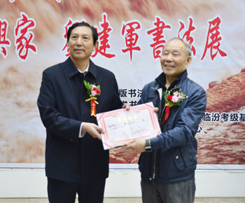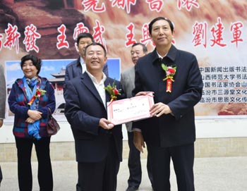开幕式上,四位书法家向山西师范大学赠送了书法作品,原战勇副校长为四位书法家颁发了收藏证书。