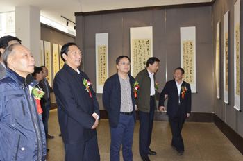 10月26日,由中国新闻出版书法家协会、山西师范大学书法协会共同主办的“尧都书怀”书法展在我校美术馆开展。副校长原战勇,校办主任、校书协主席薛珠峰,本次书法展的四名书法家杨新发、王云武、王兴家、刘建军出席了开幕式。