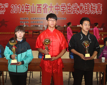 10月11日—10月12日,由山西省学生体育协会、山西省武术协会主办,山西中医学院承办的2014年山西省“振东杯”大中学生武术锦标赛在山西中医学院体育馆举行。来自山西师范大学、太谷中学等18所大中学校的219名学生参加了比赛。