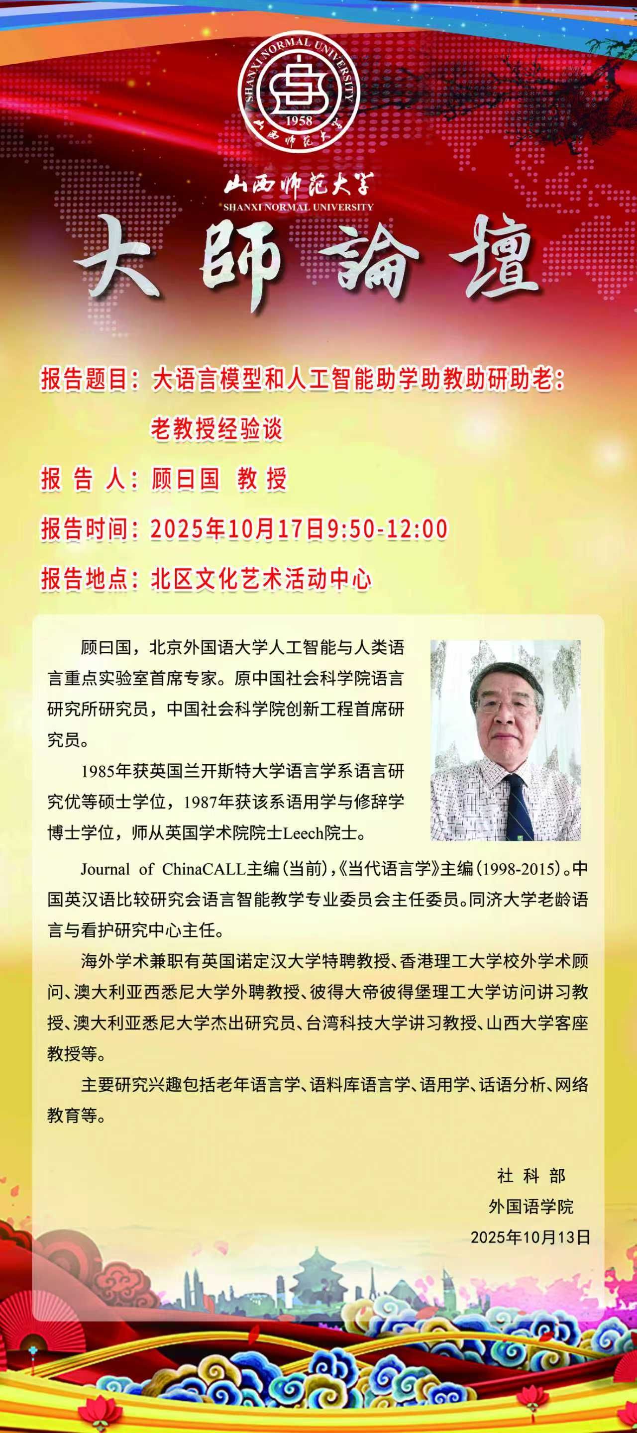 【大师论坛】北京外国语大学顾曰国教授应外国语学院邀请作学术报告