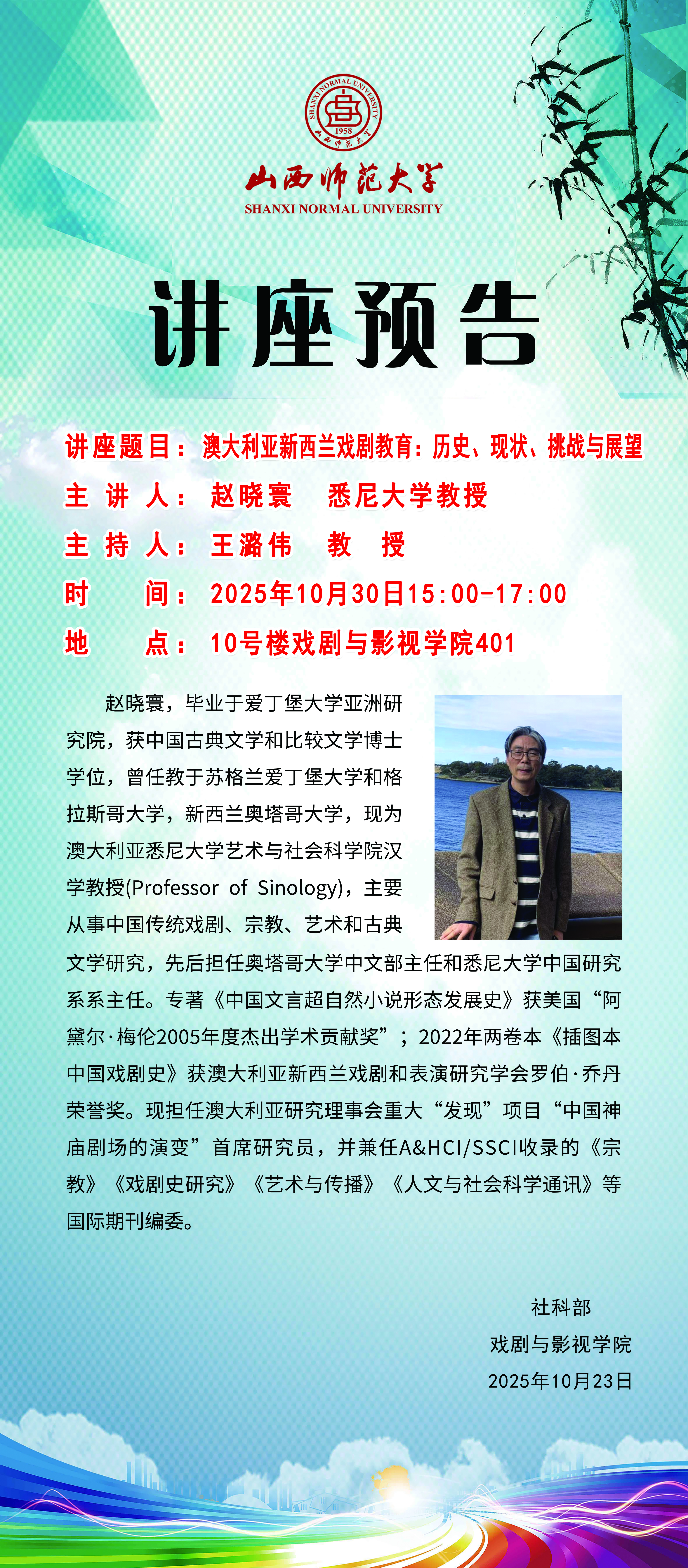 【预告】悉尼大学教授赵晓寰应戏剧与影视学院邀请作学术报告