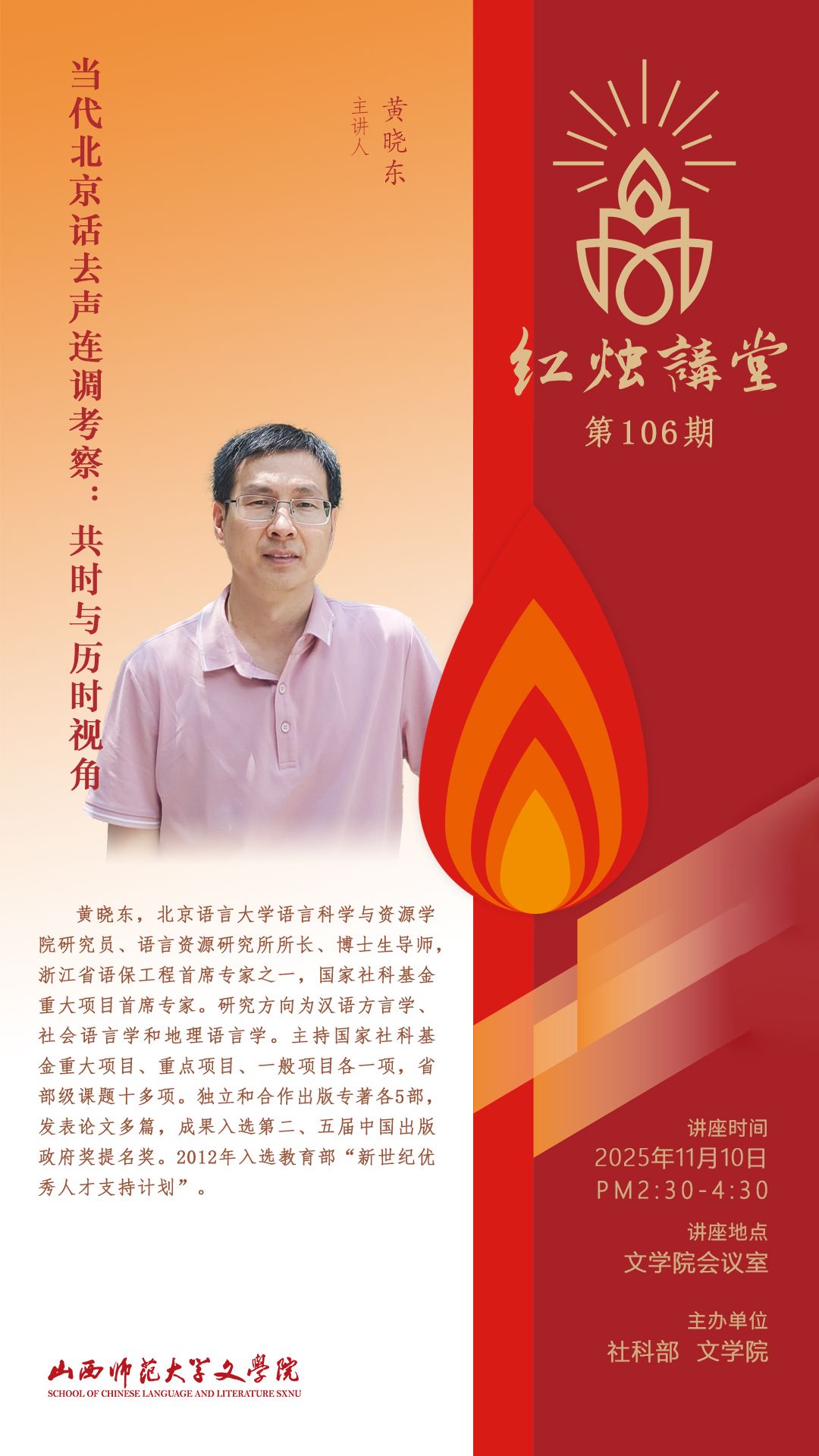 【预告】北京语言大学教授黄晓东应文学院邀请作学术报告